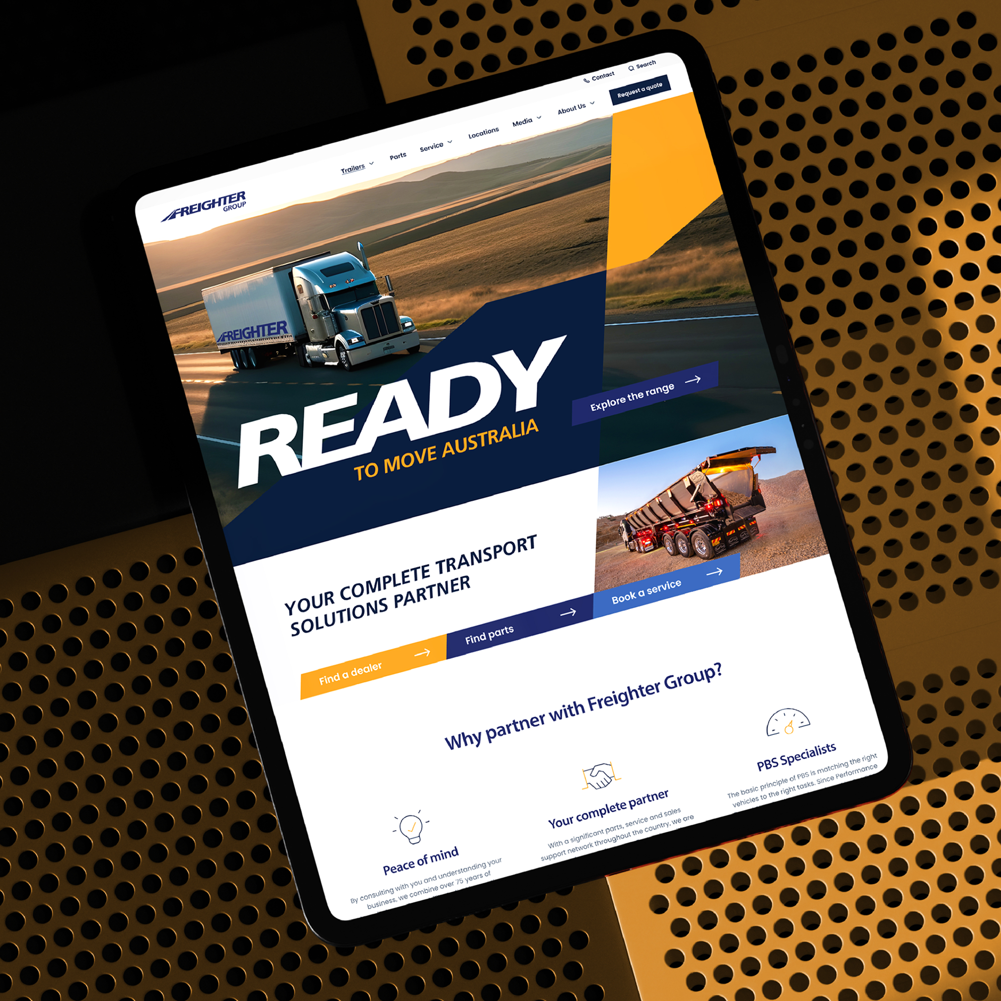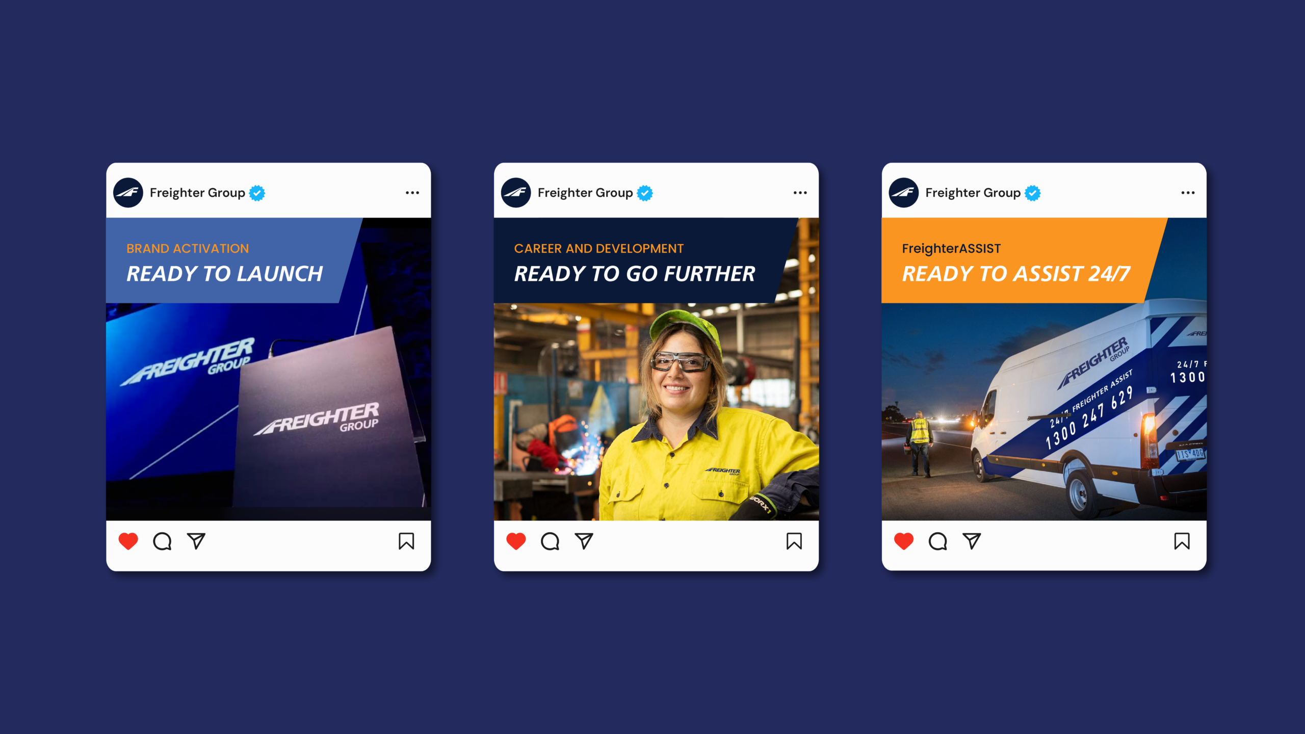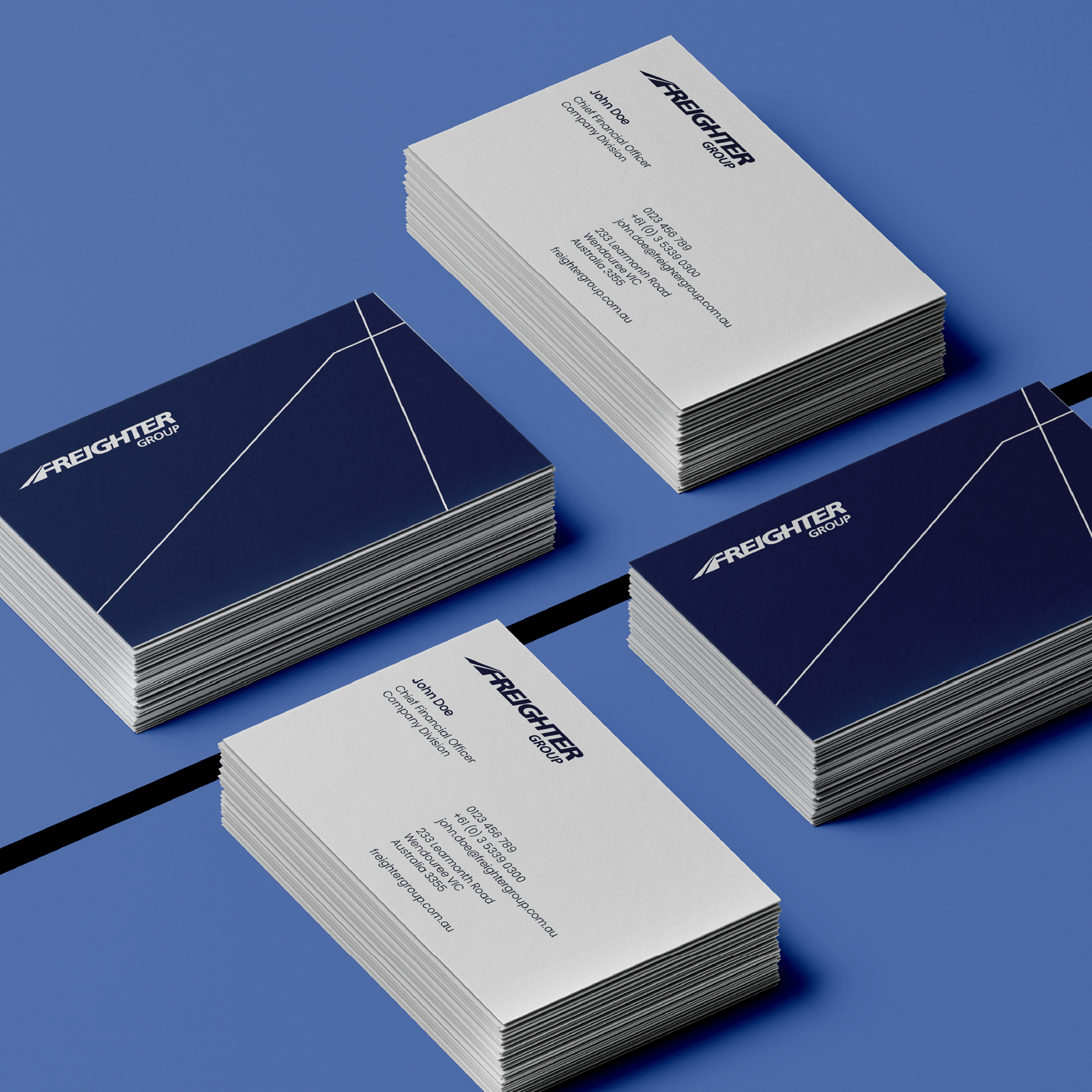 Inspired by minimalist geometry and anchored in the classic Freighter blue, the visual identity system underwent a careful evolution to convey forward-thinking and readiness. By balancing a subtle logo update with new signature branding elements, we created a compelling visual language that reinforces unity across all touchpoints. Our vision was to position Freighter Group as a definitive visual authority and industry leader, prepared to move Australia into the future.